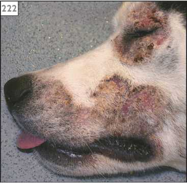 Фото 2 Цинк-зависимый дерматоз собак.. Та же собака с изобр 1. Алопеция и корки вокруг носа и глаз, ответившие на поддержку цинком.