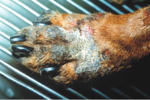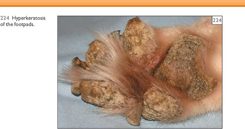Фото 7. Цинк-зависимый дерматоз собак. Гиперкератоз в области подушечек.
