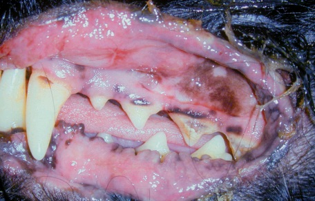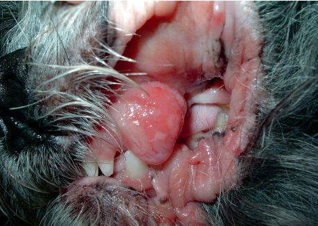 Фото 6 Эпителиотропная лимфома у собак и кошек. Выраженная отечность и экссудация слизистой ротовой полости, вызванная опухолевой инфильтрацией. Обратите внимание на схожесть с аутоиммунным заболеванием кожи, васкулитом и медикаментозным дерматитом.