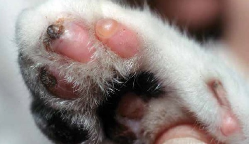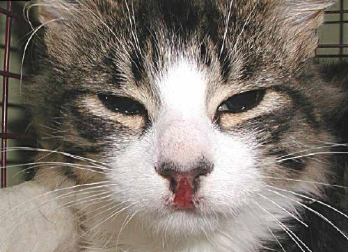 У пораженных кошек обычно симптомы развиваются остро в течение одной недели после заражения и, в зависимости от тяжести их заболевания, имеется умеренная или выраженная лихорадка. Поражения кожи включают язвы полости рта; вариабельно выраженную алопецию; корки; язвы морды, ушных раковин, подушечек лап и ноздрей; а также подкожные отеки морды или конечностей. Другие симптомы включают вялость, анорексию, выделения из носа, одышку, выделения из глаз или конъюнктивит, хромоту, желтуху, плевральный выпот, диарею, рвоту и внезапную смерть.
