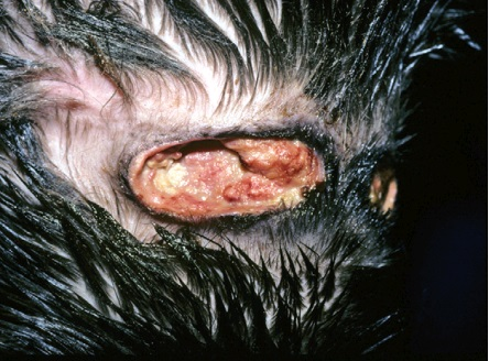 Фото 3 Кандидоз собак и кошек. Язвы в области лопатки у кошки.