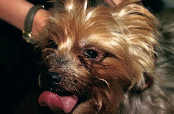 Фото 7. Кандидоз собак и кошек.Поражение слизистокожного соединения периокулярной кожи у собаки с гиперадренокортицизмом.