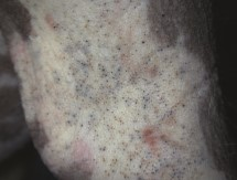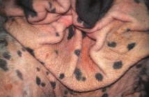 (характерные поражения вследствие грибковых дерматитов у собак, но могут также вызываться хроническим воспалительным процессом)