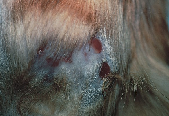 Фото 1. Кокцидиомикоз у кошек и собак. Множественные свищи на седалищной кости инфицированной кошки.