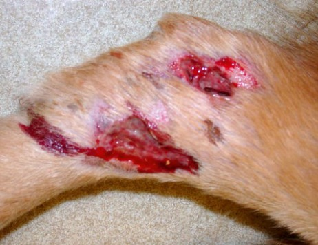 Фото 3. Кокцидиомикоз у кошек и собак. Изъязвления и свищи у собаки.
