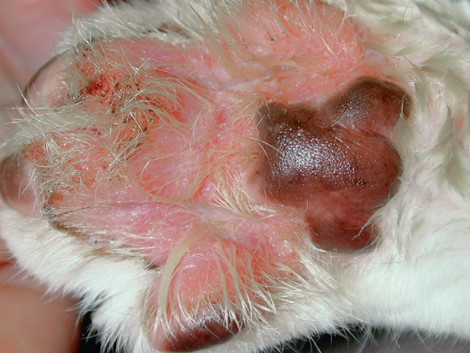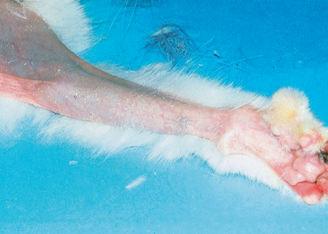 Фото 6 Паранеопластическая алопеция/дерматит кошек. Выраженный пододерматит у кошки с паранеопластическим дерматитом.
