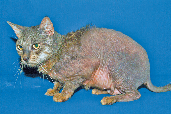 Фото 9 Паранеопластическая алопеция/дерматит кошек. Диффузная алопеция у кошки с панкреатической аденокарциномой. Обратите внимание на гладкую, блестящую структуру кожи, которая характерна для этого синдрома.