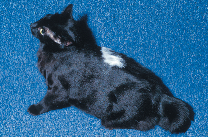 Фото 6 Иньекционная реакция. Вид вблизи кошки с фото 5. Фокальная лейкотрихия в месте иньекции очевидна.