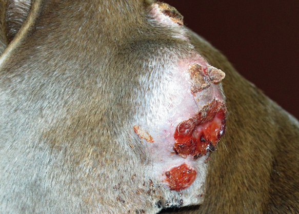 Дифференциальные диагнозы включают другие бактериальные и глубокие грибковые инфекции, неинфекционную гранулему (например, шов, оставшийся после купирования ушей) и неоплазию.