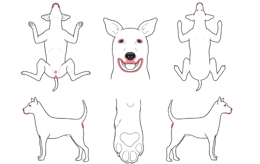 Паттерн распределения поражений кожи при слизистокожной пиодермии собак