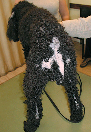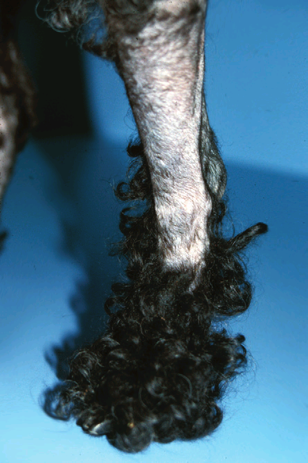 Фото 8. Анагеновое и телогеновое облысение. Диффузное облысение дистальных частей конечностей пуделя.