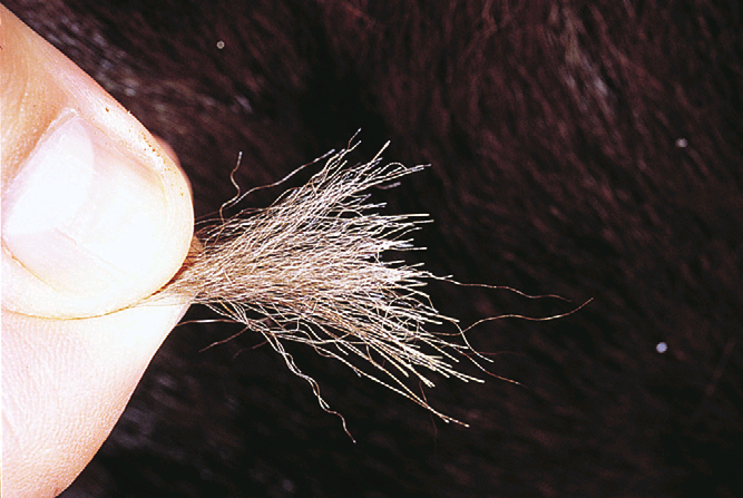 Фото 4. Выдернутые волосы у собаки с фото 1 со сломанными и искривленными волосами.