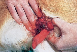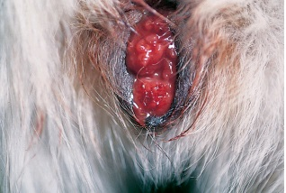 Фото 1.Трансмиссивная венерическая опухоль собак. Многодольчатая опухоль вагинальной слизистой у взрослой собаки. Массы, имеющие сходство с цветной капустой, типичны для трансмиссивной венерической опухоли.