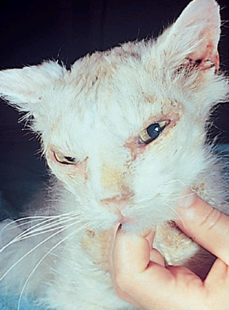 Фото 5.Вирусная лейкемия кошек. Эксфолиативные поражения морды и слизистокожные изьязвления у кошки с дерматитом, вызванным лейкемией кошек.