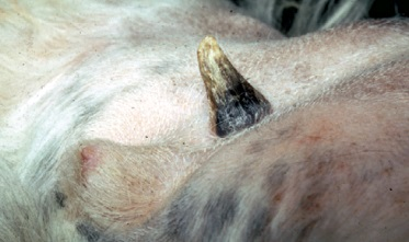 Кожные рога (см Фото 2-4) являются коническими или цилиндрическими массами бесклеточного кератина, которые наиболее часто развиваются в центре пальцевых, центральной или пястной/плюсневой подушечек. Редко схожие поражения могут развиваться на носовом зеркале и веках.9 Дифференциальный диагноз включает кожные рога, ассоциированные с вирусным папилломатозом, солнечный кератоз, заболевание Боуэна,, плоскоклеточный рак, расширенные поры и инфундибулярную кератинизирующую акантому.
