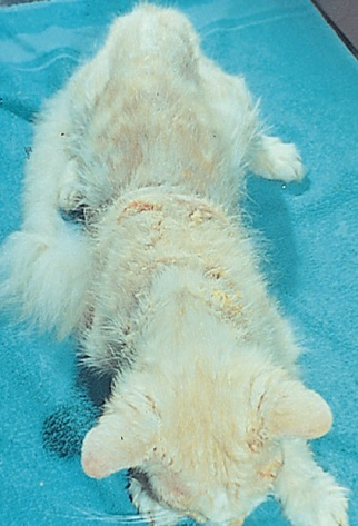 Фото 6.Вирусная лейкемия кошек. Генерализованное облысение и эксфолиация у кошки с дерматитом, вызванным лейкемией кошек.